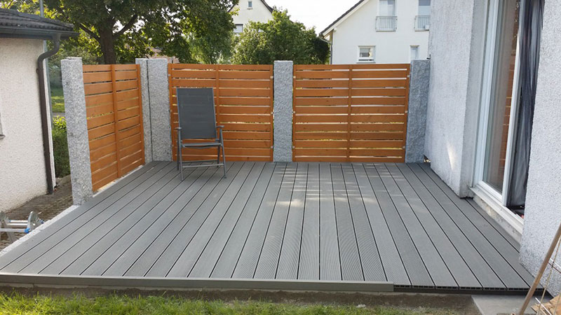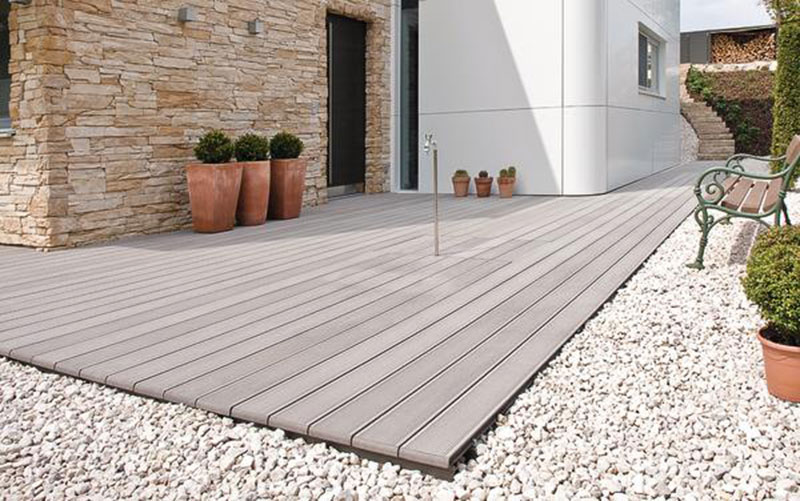 Die Technologien der Herstellung der Terrassenbretter enthalten die Prozesse der Extrusion und des Schleifens. Im Sommer, Herbst, Winter und Frühling die aus WPC hergestellten Bretter, auch wenn sie nass sind, nicht, dank der gerillten Oberfläche!